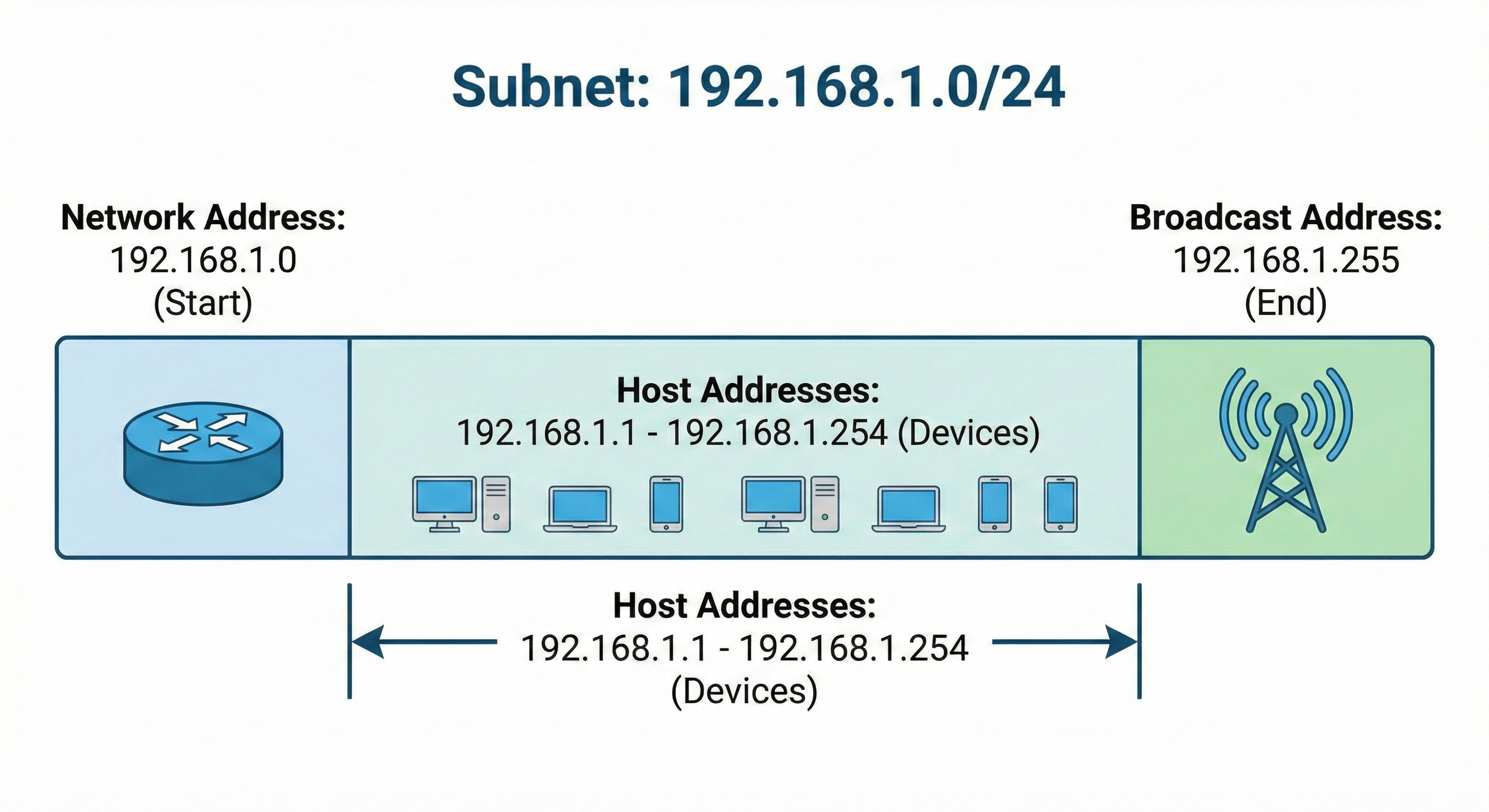 Với subnet 192.168.1.0/24 (256 địa chỉ):